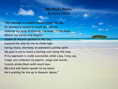 "Starry's Poetry." My Photos & Art Poems will be available after I settle down and make arrangements with my new life back home in the States, if that is God's will, after a long visual journey round the world, and as time provides with the creation of My New Artistic Photos & Art Poems. I'll let you know when I am ready for my new ventures. Do not hesitate to contact me, if you are interested in My Photos & Art Poetry!